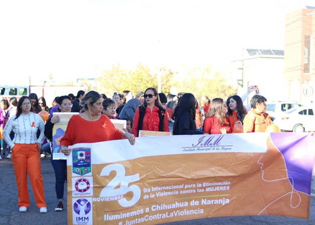 El Gobierno Municipal de Nuevo Casas Grandes llevó a cabo este 25 de noviembre la marcha conmemorativa por el Día Internacional de la Eliminación de la Violencia contra la Mujer, actividad organizada por el Instituto Municipal de las Mujeres en coordinación con CAVIM, con el propósito de visibilizar, promover y reforzar acciones de prevención y atención a la violencia de género.