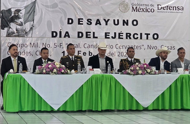 Nuevo Casas Grandes, Chih 20/02/2026 El Presidente Municipal de Casas Grandes, C. Roberto Lucero Galaz, asistió esta mañana al desayuno conmemorativo por el Día del Ejército Mexicano, realizado en las instalaciones del 35 Batallón de Infantería.Ver Mas |